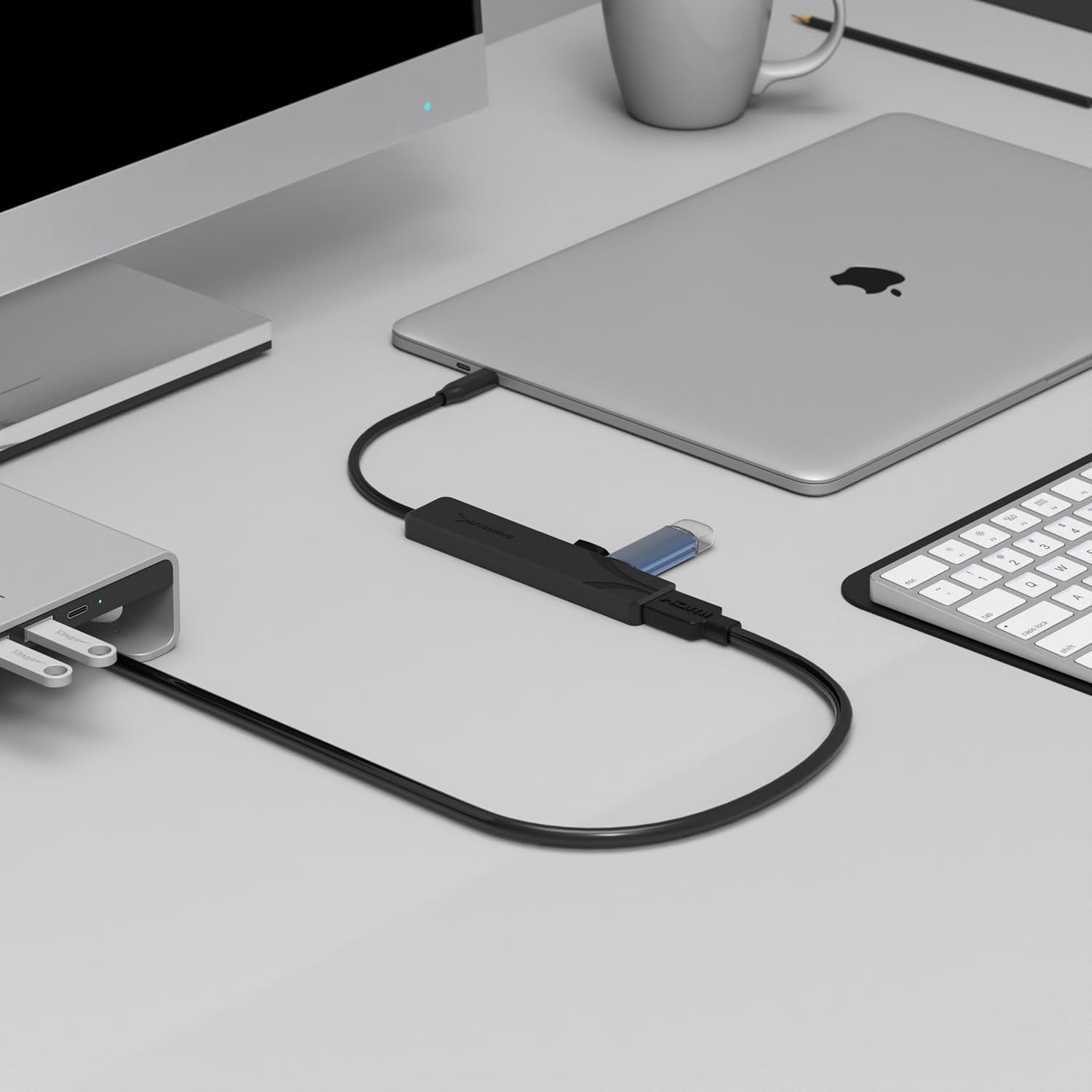 El Sabrent HB-UMLS es un hub multifunción que ofrece 4 puertos USB 3.0 de alta velocidad y un puerto HDMI 4K, ideal para expandir las capacidades de tu notebook, tablet o smartphone compatible.
