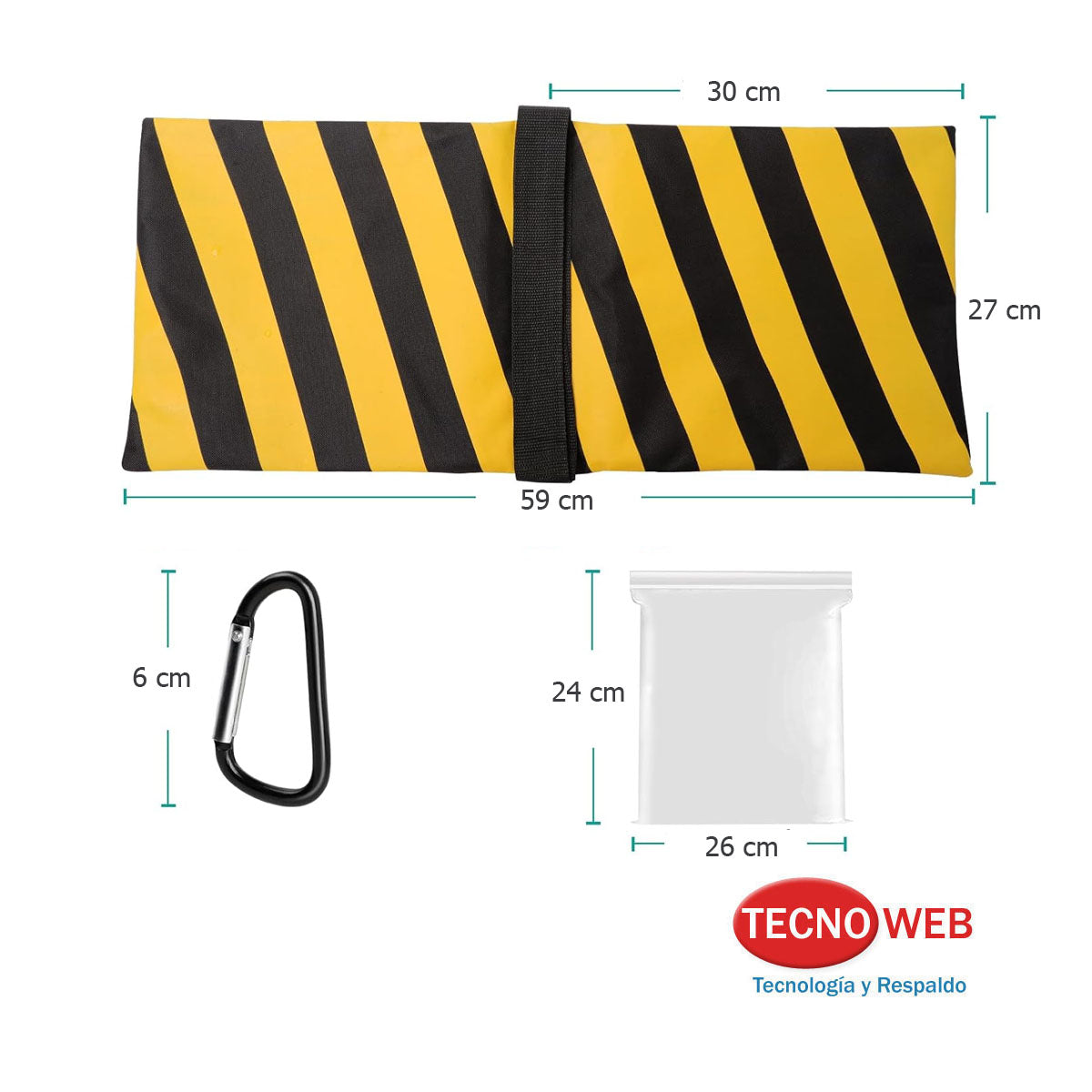 Cada saco de arena puede contener hasta un máximo de 11 Kilos de peso. El tamaño de la bolsa de arena es de 58 x 26 cm, fácil de llenar y transportar, puedes llenarlos con arena, roca, grava, suciedad y otros contenidos para lograr el peso y la estabilidad deseados